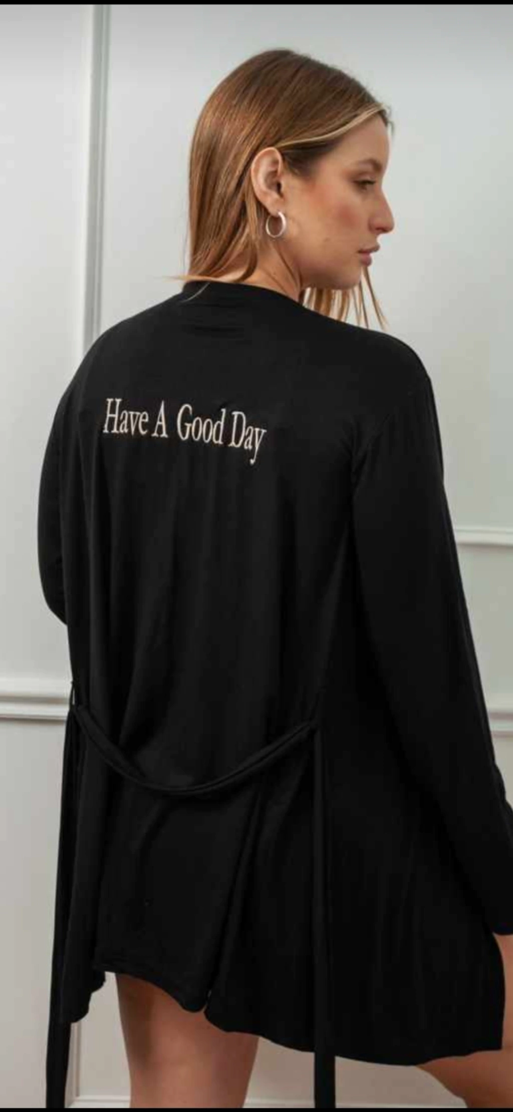 Incluye musculosa con breteles regulables, shortcito cómodo y una bata con lazo que le suma ese detalle especial.